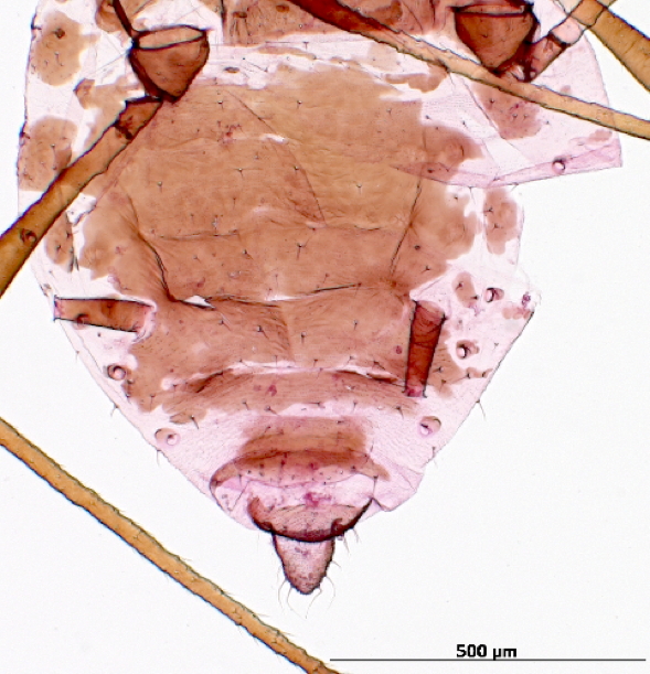 is worldwide in distribution and polyphagous, with host preferences on composites and rosaceous plants.