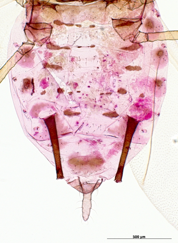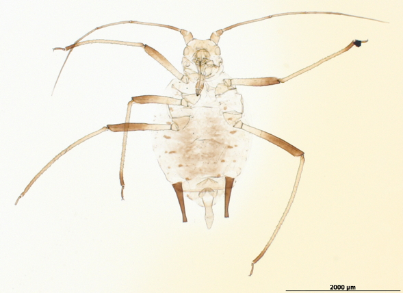 is a cosmopolitan aphid species that feeds mostly on grasses and cereals.