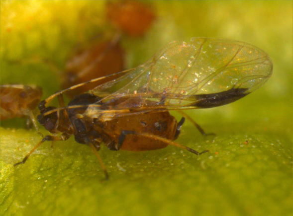 is an Old World polyphagous aphid species attacking mostly tropical shrubs.